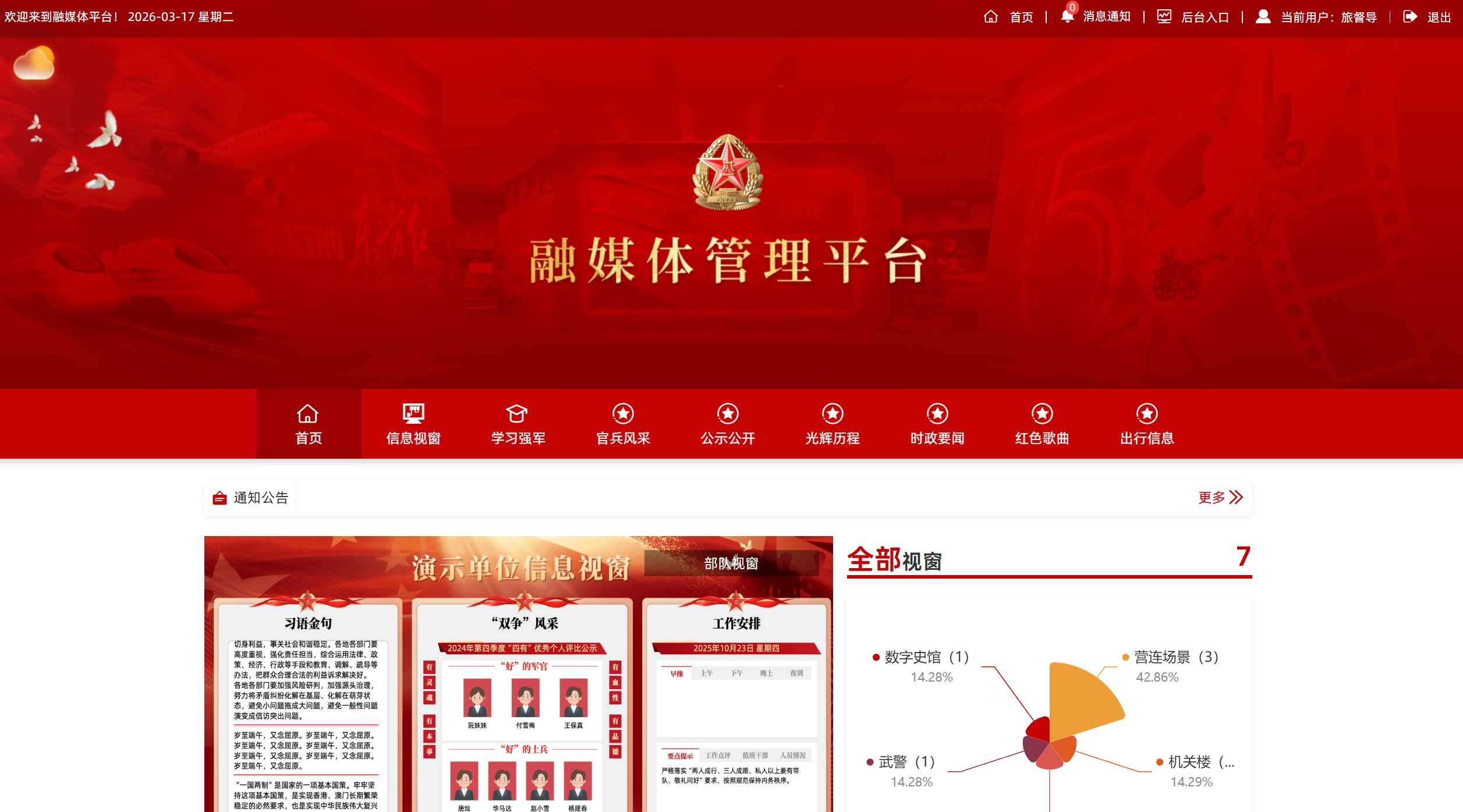 • 一体化协同:与“军队政治工作一体化平台”其他应用模块(如思想政治教育平台)无缝对接,内容共享、平台联动。