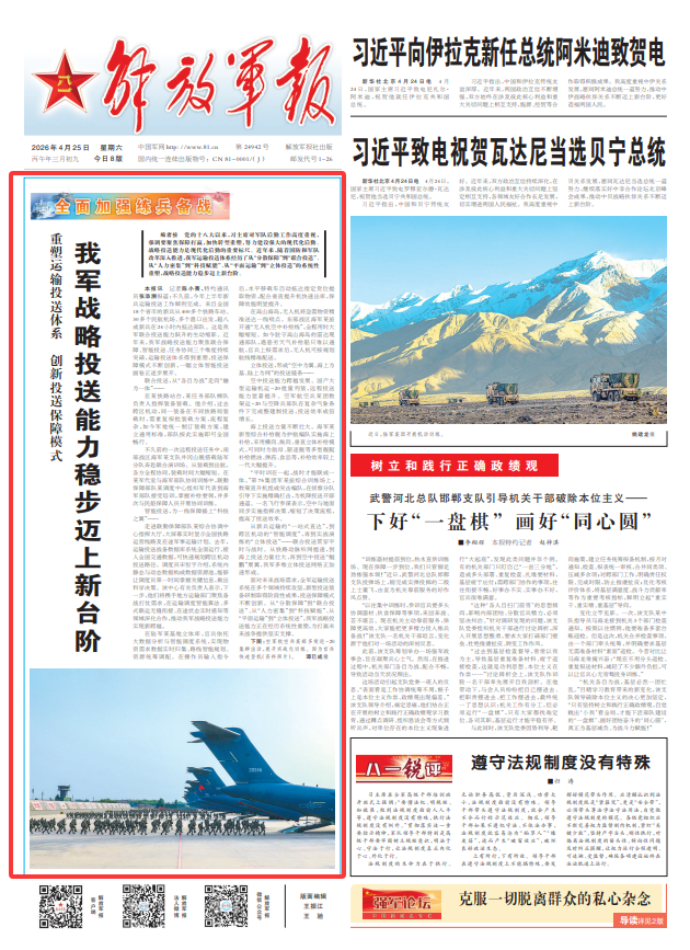 党的十八大以来,习主席对军队后勤工作高度重视,强调要聚焦保障打赢,加快转型重塑,努力建设强大的现代化后勤。战略投送能力是现代化后勤的重要标尺。近年来,随着国防和军队改革深入推进,我军运输投送体系经历了从“分散保障”到“联合投送”、从“人力密集”到“科技赋能”、从“平面运输”到“立体投送”的系统性重塑,战略投送能力稳步迈上新台阶。