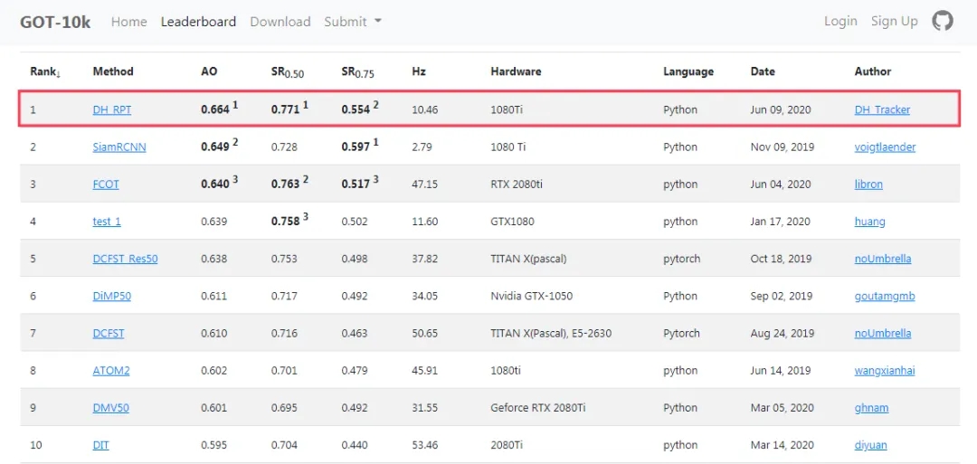 近日,大华股份基于深度学习的视觉目标跟踪算法,在通用目标跟踪评测集GOT-10k(Generic Object Tracking Benchmark)上获得综合精度排