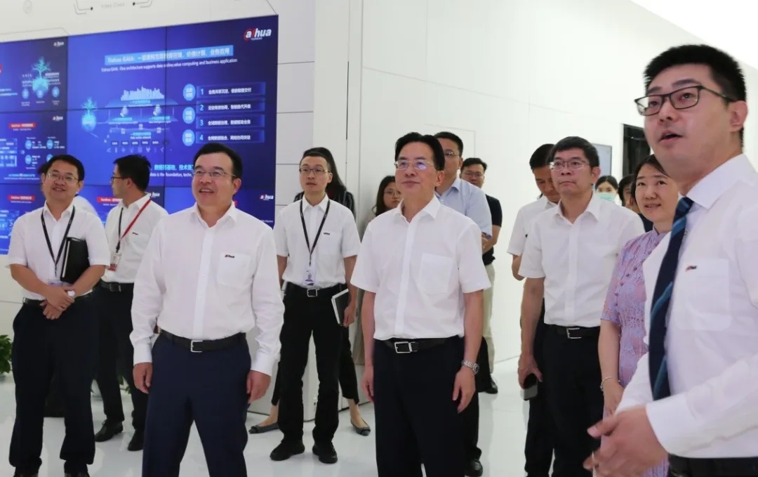 6月16日, 杭州亚组委副秘书长、杭州市副市长陈卫强一行莅临大华股份总部考察工作。大华股份董事长兼总裁傅利泉等热情接待来访领导并陪同