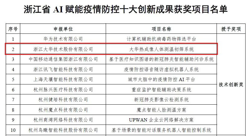 近日,浙江省人工智能学会公布了浙江省AI赋能疫情防控十大创新成果获奖项目名单,大华股份研发的超高精度人体热成像测温系统,凭借在疫情防