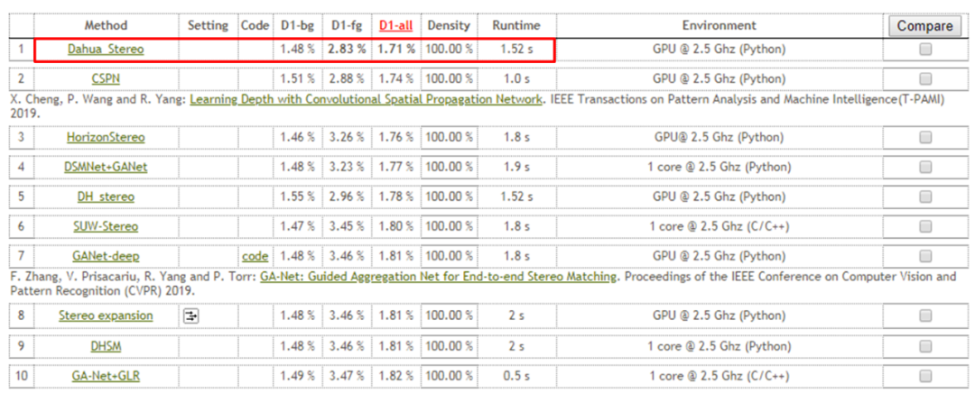 近日,大华股份基于深度学习的双目立体匹配算法,刷新了KITTI Vision Benchmark中双目立体匹配竞赛的最好成绩,超越了其它一流AI公司和顶