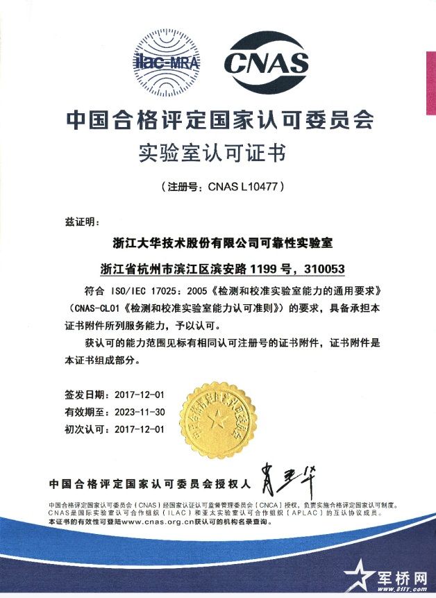 日前,大华股份可靠性实验室凭借先进的硬件配备、较高的管理水平、过硬的团队素质、规范的现场操作顺利通过中国合格评定国家认可委员会(英