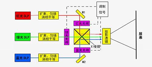 1 三基色激光投影机 投影机的光源经过多年来的技术更新以及革命性换代,已经出现过多种多样的光源类型。目前市场前景最好的光源莫过于激光光...