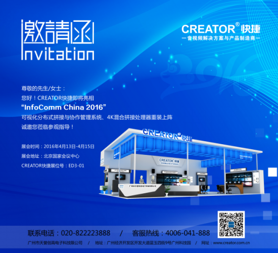4月13日—15日,InfoComm China 2016在北京国家会议中心举行。本届展会吸引了来自40多个国家和地区的277家参展商,展商总数刷新记录,汇聚专业视听与信息通信最前沿...