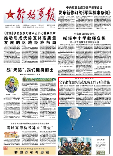 既要扎紧制度笼子 又要畅通绿色通道全军出台加快推进采购工作20条措施解放军报讯(记者孙兴维、通讯员苏星)畅通应急采购快车道,实行常态