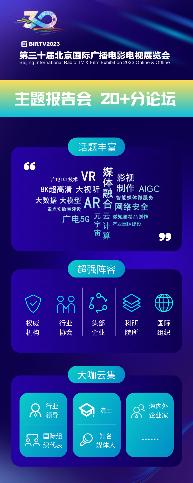 2024年8月21-24日,第三十一届北京国际广播电影电视展览会(BIRTV2024)将在北京中国国际展览中心(朝阳馆)举办,主题报告会将于8月20日召开,现展会筹备工作已全面启动!