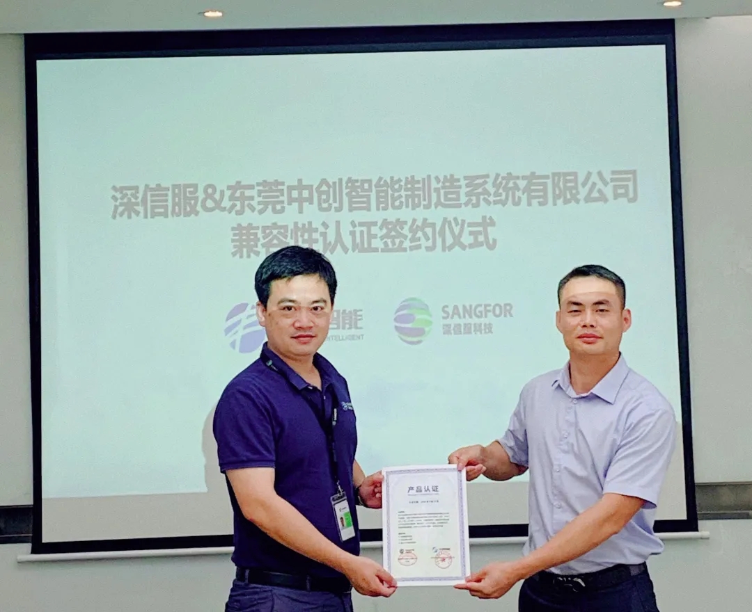 近日,东莞中创智能制造系统有限公司(以下简称中创智能)和深信服云计算完成兼容性认证测试,并发布联合解决方案。双方致力于为用户提供更