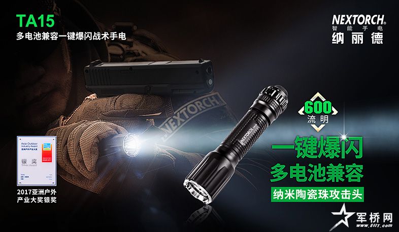 TA15是一款由主力战术手电TA30衍生而来,专为战术、勤务人员设计的多电池兼容战术备用手电,可全面兼容AA CR123A 14500 16340等电池